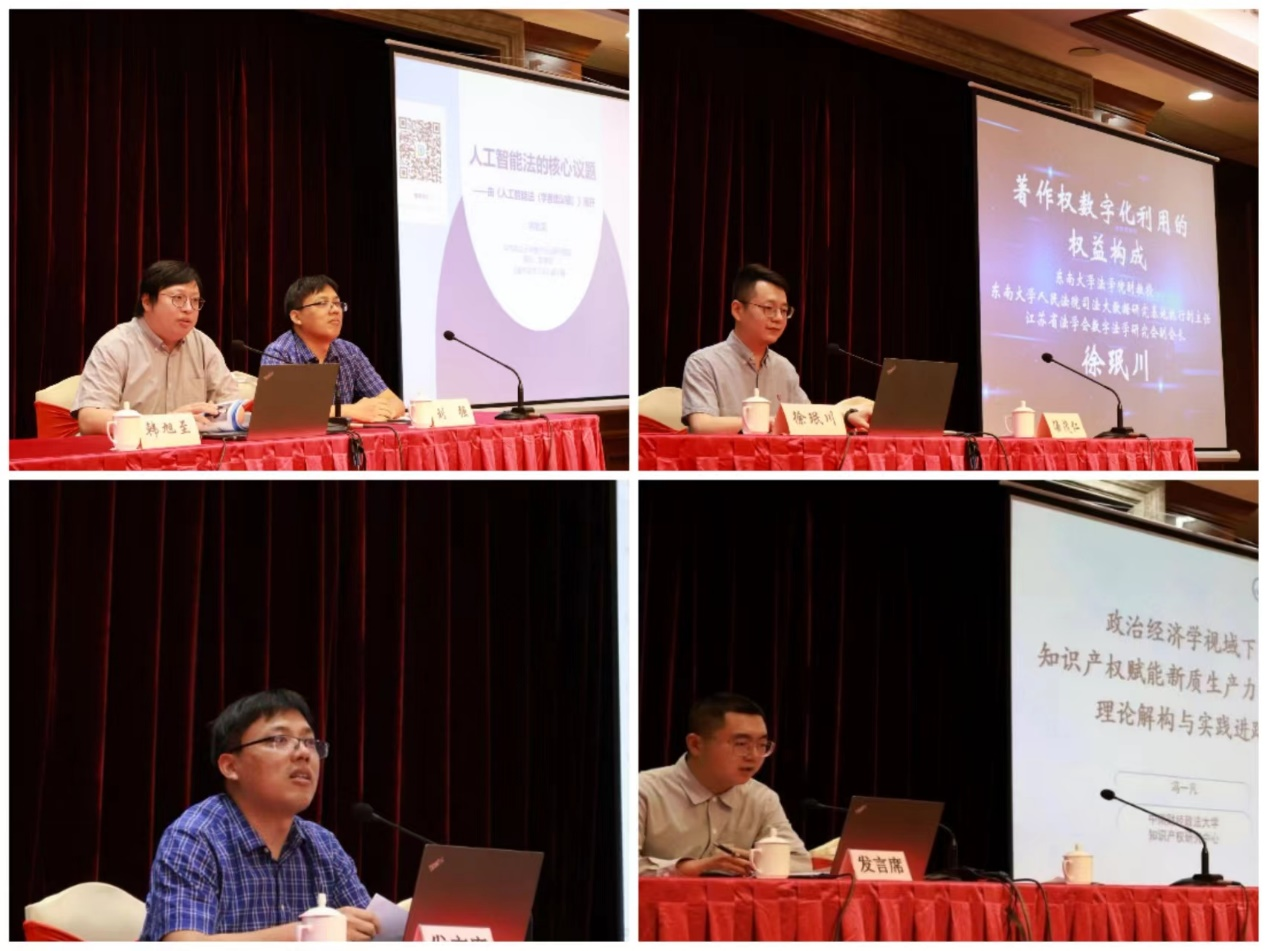 大会的主旨报告环节由华东政法大学数字法治研究院副院长、《数字法学评论》副主编、上海市法学会数字法学研究会秘书长韩旭至,江苏省高级人民法院审判委员会委员、知识产权审判庭(民事审判第三庭)庭长、博士汤茂仁,中南大学永利集团3044官网欢迎您教授、博导刘强,东南大学永利集团3044官网欢迎您副教授、东南大学人民法院司法大数据研究基地执行副主任、国家智能社会治理实验(东南大学)教育特色基地研究员、江苏省法学会数字法学研究会副会长徐珉川分别围绕“人工智能法的核心议题”“知识产权惩罚性赔偿的适用”“药品专利信息登记反垄断问题研究”“著作权数字化利用的权益构成”等主题做了精彩演讲。
