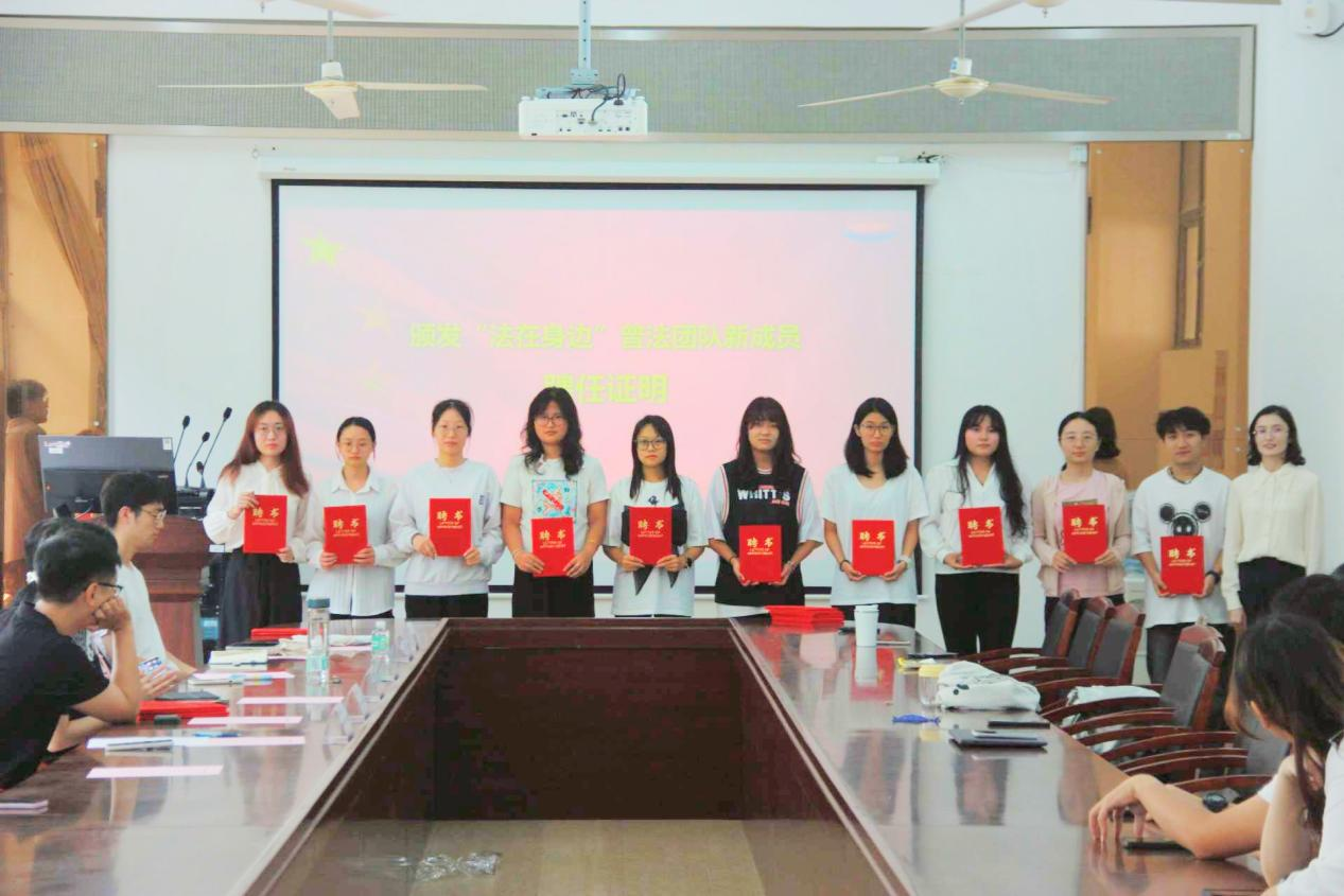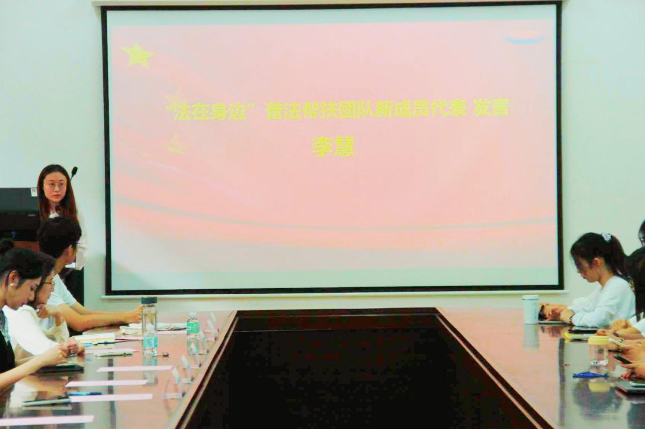 团队老成员代表邹歆雨向加入“法在身边”团队的新成员表示欢迎,并分享了团队在普法工作中的经验和成就。她详细介绍了普法团队扎根基层开展的法治调研、普法宣讲、法律援助情况。团队暑期社会实践负责人宋政辰分享了普法团队在青少年法治保护建设方面的调研成果。他表示,团队聚焦青少年法治保护建设,与多个单位建立联系,深入访谈和研究,了解校园欺凌防治与未成年人审前调查的现状,并以此为基础对未来的普法调研工作提出了建设性的意见。新成员代表李慧在发言中表达了对加入团队的荣幸与热情,并表达了对未来工作的期待和决心,承诺将继续推动普法工作,提高普法的实效性和针对性。