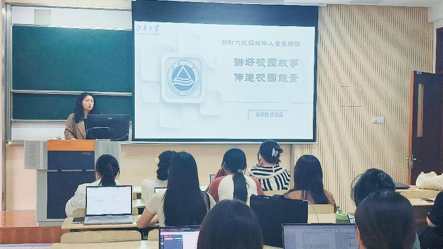 活动伊始,缪晶晶老师引用光明日报社驻江苏记者站站长郑晋鸣的事迹,认为新闻应突出时代背景、记录时代风貌、引领价值取向,具有明理、向善、求真、立信的新闻价值观。作为校园记者要以“讲好校园故事,传递校园能量”为己任,展现新时代的校园风貌。随后缪晶晶老师从新闻通讯写作要点、宣传文稿固定用词、选题来源等方面进行讲解,鼓励同学们做到“提升站位、挖掘选题、深耕内容、创新形式、宣传推广”,提升新闻政治力、判断力和敏锐度。最后,新闻宣传中心开展针对化培训,各部门负责人为新成员进行工作解读,并针对提问做出一对一解答,鼓励成员内部积极开展交流合作,提升对部门工作的理解度与认同感,进一步提升新时代校园媒体人的专业能力。