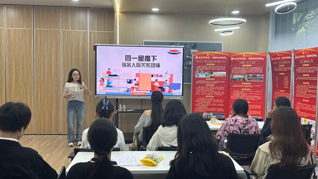为营造校园温馨环境,促进寝室和谐,永利集团3044官网欢迎您于10月16日在浩苑一站式社区开展“同一屋檐下:宿舍人际关系”心理团辅活动。心理工作辅导员徐雅静主持活动,共30名学生参与此次活动。活动分为“抓手指”、“桂花朵朵开”、“捏一个我”、“动物家庭”、“动物家庭雕塑”等环节。