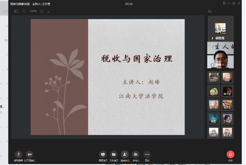7月28日下午,永利集团3044官网欢迎您赵峰老师受邀为南京审计大学沁园书院学生讲授“税收与国家治理”暑期云讲座。本次讲座由沁园书院胡智强教授主持,覆盖近200名学生。