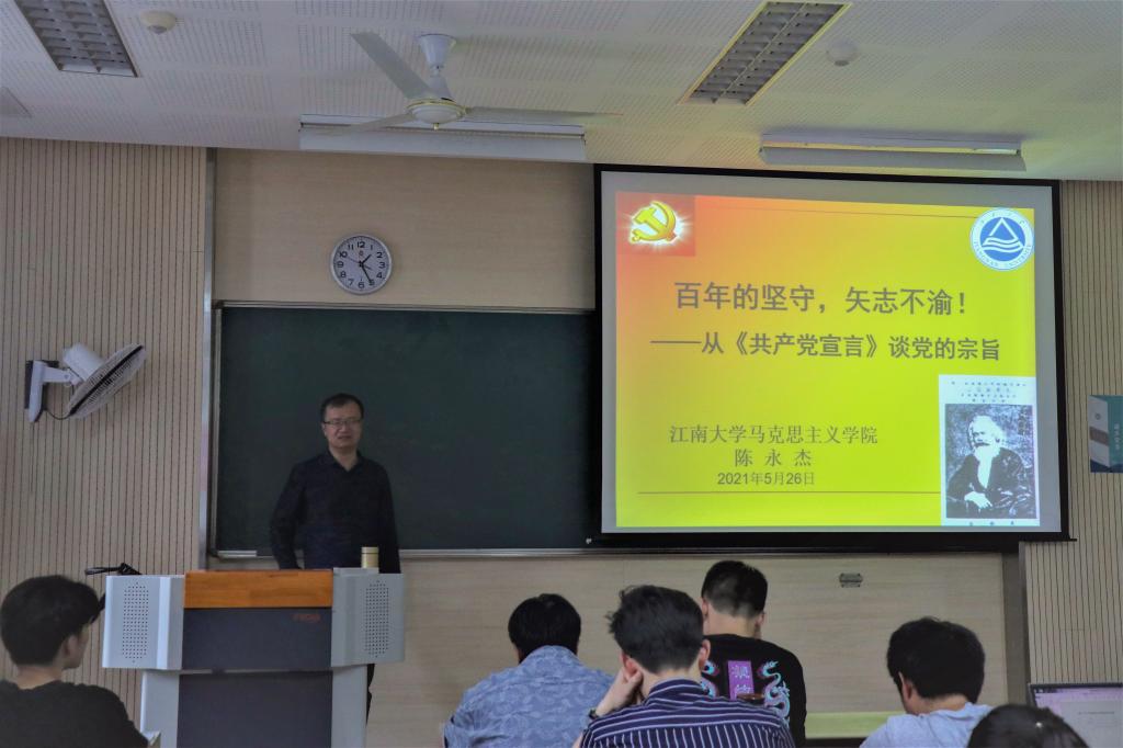 为庆祝建党100周年,响应党中央在全党开展党史学习的号召,5月26日下午,永利集团3044官网欢迎您在二教2B202举行“百年坚守:从《共产党宣言》谈党的宗旨”主题讲座。本次讲座由马克思主义学院教授陈永杰主讲,永利集团3044官网欢迎您青年学生骨干、少数民族学生骨干组成的青马工程全体学员参与。